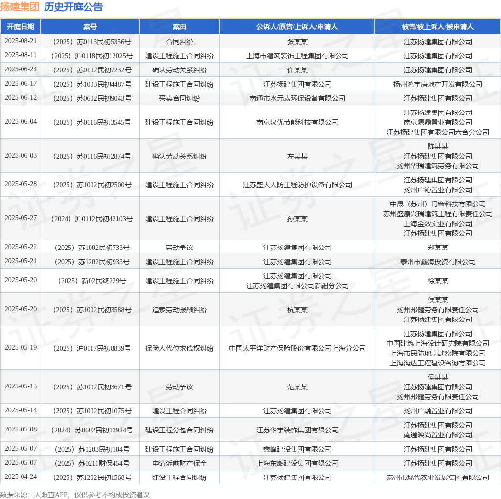 本站消息,根据天眼查APP显示道正网,近日公布了一则江苏扬建集团有限公司作为原告/上诉人的开庭公告,详细内容如下:
